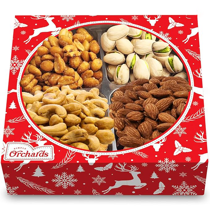 - A GIFT WITH HEART - Embrace the spirit of the season with the Simple Orchards Christmas Nuts Gift Basket. It's more than just a gift; it's a gesture of love, appreciation, and celebration. Choose this nut gift box to infuse your holiday gatherings with the goodness of nature's bounty and the warmth of shared moments