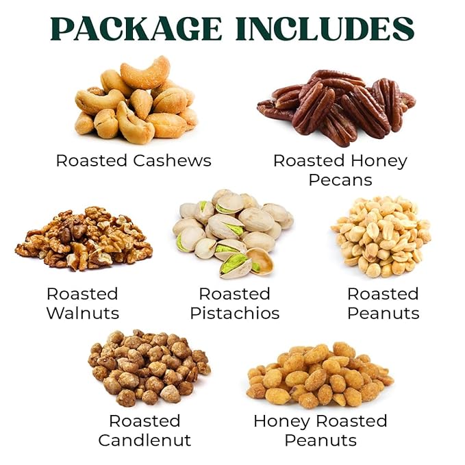 - THERE’S SOMETHING FOR EVERY NUT LOVER INSIDE: If the lucky recipient(s) enjoy nuts, then they’ll go nuts over this gift. Our mixed nuts gift boxes contain peanuts, cashews, pistachios, walnuts, and so much more. All OK Kosher Certified.