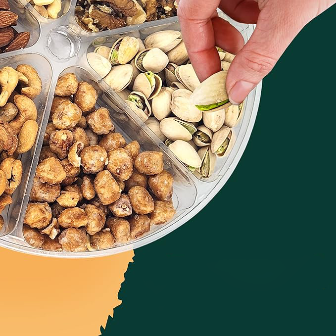 - MADE IN SMALL BATCHES TO MAXIMIZE FRESHNESS: Quality is very important to us. Order confidently knowing that all the nuts on this food tray are hand-selected in small batches for maximum flavor and freshness. Each bite will be more delicious than the last.